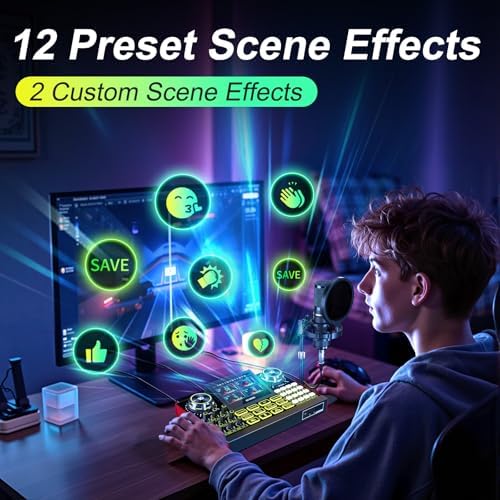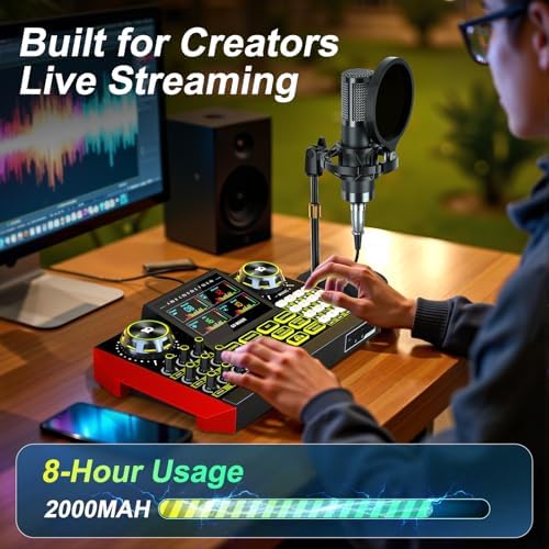 About this item 【Podcast Equipment Bundle】The podcast microphone bundle includes everything you need for professional-quality audio creation: a 3.5mm condenser microphone with a boom arm and the Sound Board. Perfect for podcasters, gamers, streamers, and content creators who want an all-in-one solution for mixing, recording, and streaming. 【Sound Board for 3.5/6.35mm Dynamic Microphone】No complicated setup required! Just plug the live sound card into your PC, Mac, or mobile device, and start streaming or recording right away. This pod cast equipment kit is designed to make your audio experience seamless and easy. 【3.5mm Microphone with Round Base Stand】The included 3.5mm streaming microphone (P15)is designed for clear, reliable sound capture. Combined with Round Base Stand, you can position your streaming mic perfectly for optimal sound quality, while saving space and reducing clutter. 【Customizable Sound Effects & Voice Control】Take full control of your sound with customizable settings for bass, treble, reverb, pitch, and more. Plus, the soundboard offers 12 built-in sound effects, like applause and laughter, to make your streams more engaging and entertaining. 【Clear Sound with Built-in Noise Reduction】Achieve crystal-clear audio with the audio mixer for pc’s advanced noise reduction technology. Whether you’re podcasting or streaming live, your voice will always be crisp and professional, eliminating unwanted background noise. 【Voice Changer for Fun & Creative Streams】Switch up your sound with the built-in Voice Changer. Transform your voice into a female, deep, baby, or magical voice—perfect for adding some fun and creativity to your streams or podcasts. Customize the sound with bass and reverb adjustments to make it uniquely yours. 【5 Built-in + 2 Custom Reverb Modes, Perfect for Beginners】Whether you’re recording vocals or instruments, live streaming equipment offers 5 preset reverb modes that you can adjust to match your sound. Get a professional audio effect with ease, perfect for live streaming, podcasts, and more. 【Built for Creators Live Streaming】With the G9 Audio Mixer and 3.5mm microphone, you have everything you need to create professional-grade audio for your podcast, livestream, or recordings. It’s the ideal choice for anyone who wants to elevate their audio quality without the hassle.